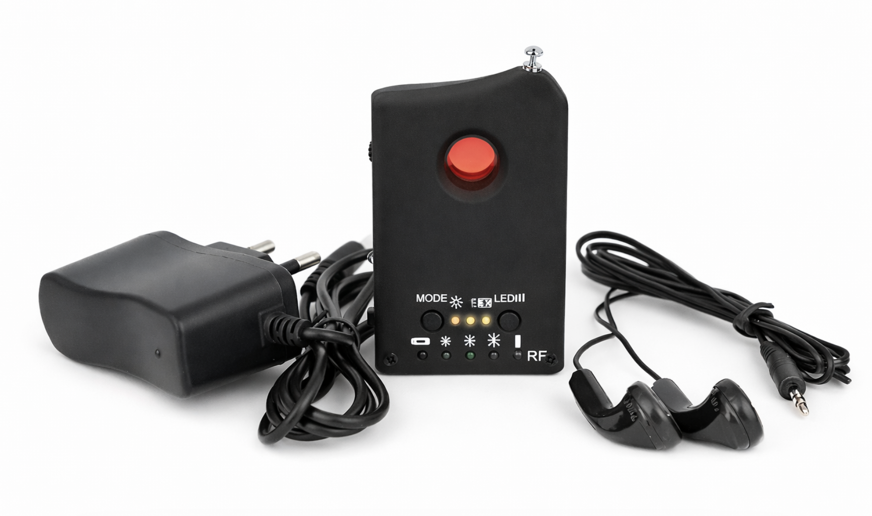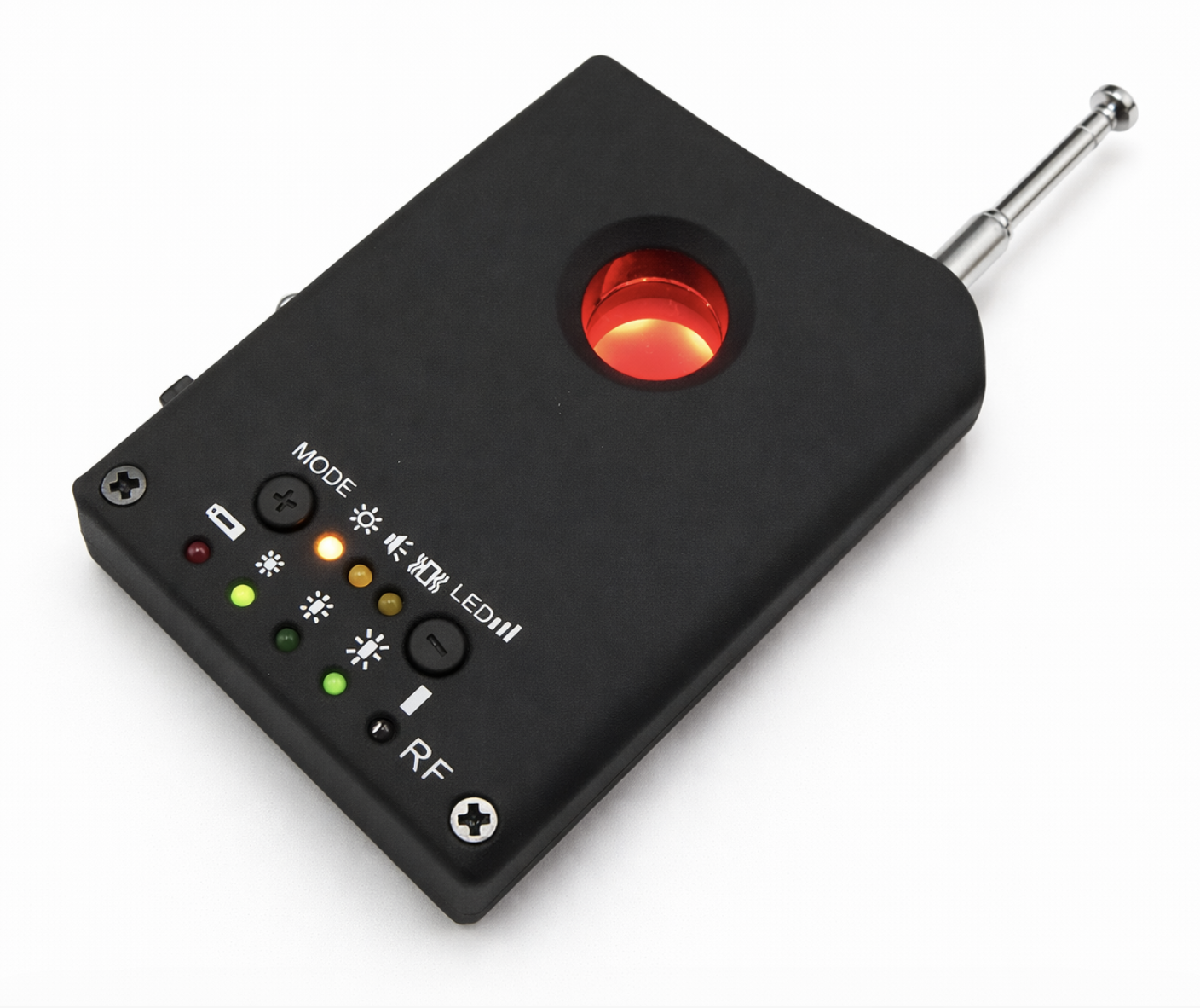 Acest aparat conține două dispozitive într-unul singur. În primul rând, poate servi ca un detector de camere ascunse (lentile CCD și CMOS). A doua funcție este detectarea de semnal wireless. În acest fel, poate detecta, de exemplu, dispozitive GPS, dar nu trece cu vederea și bruiajele de semnal sau dispozitive pentru interceptare. Detectează toate dispozitivele care operează la frecvențe de la 1 MHz la 6,50 GHz. Dacă o cameră în miniatură cu un obiectiv (micro) este ascunsă în mod corespunzător, este aproape imposibil de detectat. Și are o sursă de alimentare neîntreruptă, poate fi în zona dvs. timp de câteva luni. Detectoarele radio clasice detectează numai camerele fără fir. Cu toate acestea, dacă se folosește o cameră cu cablu sau o cameră cu detectoare HF, nu o veți detecta, deci este necesar să folosiți acest detector de spectru. Detectorul detectează lentile, adică nu contează dacă aparatul foto este activ sau inactiv. Puteți seta sensibilitatea de detectare pe dispozitiv. De asemenea, puteți afla cu ușurință cât de departe este sursa de semnal de la dvs. Pentru aceasta se folosesc diode LED, care vă vor arăta dacă vă apropiați de sursă. În zilele noastre, totul este monitorizat și dacă sunteți interesat să detectați cel puțin unii dintre curioși nedoriți, încercați acest detector mai ieftin, dar eficient. Evitați problemele înainte ca oricine să poată obține informații confidențiale despre dvs. și să vă deranjeze confidențialitatea.